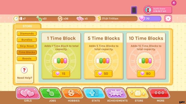 やりたいことを一度にすべて実行できないと、イライラすることがあります。しかし、優先順位を付けて物事を後回しにすることは、このゲームがあなたに要求するスキルです.最終的には、タイム ブロックが豊富になり、必要なすべてを一度に実行できるようになります。あなたは辛抱強く、無料でこの時点に到達することができます.ダイヤモンドをタイム ブロックに費やすと、後で不要な超過分が発生し、使用できるダイヤモンドが少なくなります。