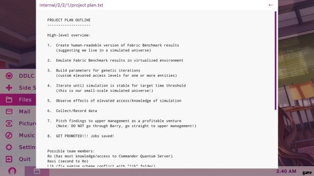 時間を午後 2 時 40 分に変更しました project plan.txt を開くことができます。開くと実績「Stonks」を取得できます。