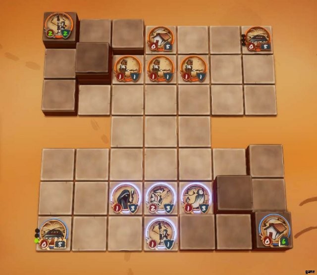 一般に、タワーはかなりの量のダメージを与える可能性があるため、これらのスペースのいずれかでターンを終了しないことをお勧めします。このようなシナリオでは、多くの場合、タワーを攻略しようとさえせず、代わりに単に周りを回るのが最善です.これは直感に反するように思えるかもしれませんが、勝利は敵のユニットではなく、敵の要塞を破壊することによって達成されます。このシナリオでは、タワーに向かって走る代わりに、タワーの周りを積極的に移動し、Big Grunt を配置して複数の敵ユニットを倒すことができます。