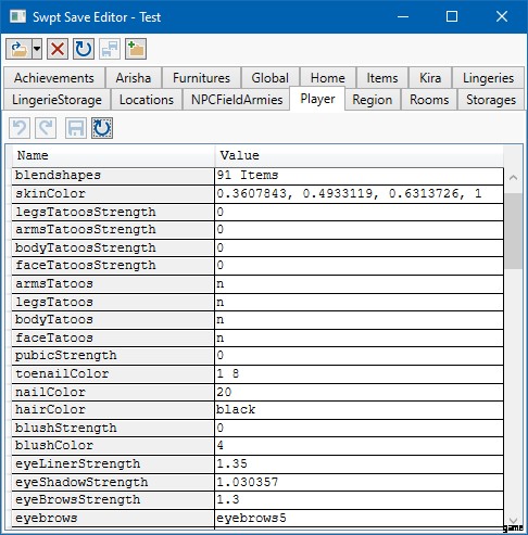 エディタを使用すると、セーブ ゲーム フォルダを開いて、すべてのプロパティ名と値を含むすべてのファイルを表示できます。値は編集できますが、変更内容に注意してください。ゲームが理解できない値を入力することで、セーブを簡単に破ることができます。