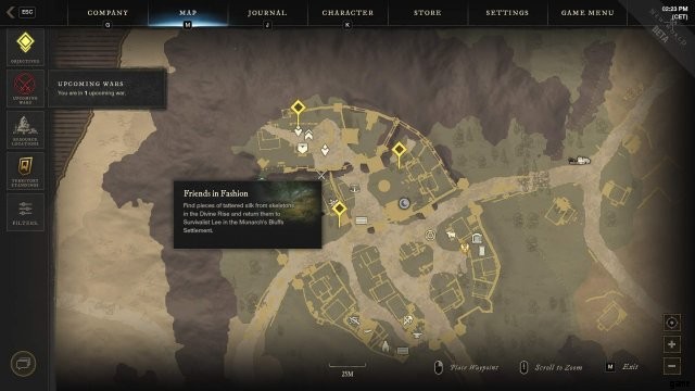 キャンプのレベルを上げるためのアクセスは、キャラクター レベル 15 で表示されます。クエスト「サバイバリスト:ファッションの友達」で上げることができます。モナーク ブラフで入手できます。