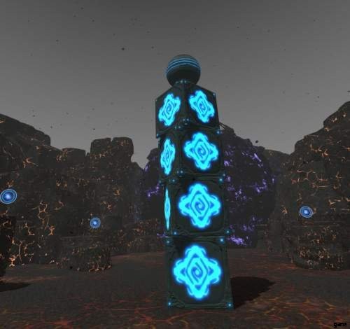 ここでの目的は、壁の上部に到達することです。コンソールのある場所に到達したら、そのシンボルの上に手をかざし、コントローラーのトリガー ボタンを押して、示された 4 つのシンボルをヒットします。シーケンスを正しく行うと、新しいテレポート場所が表示され、上に進むことができます。