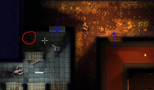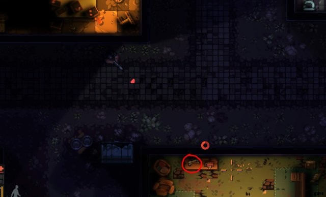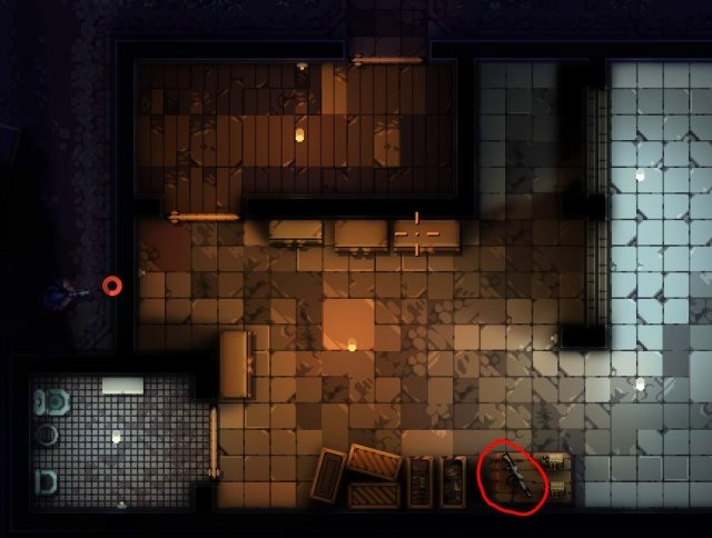 - マップの南の境界に到達するまで、西の壁に沿って南に向かいます (窓からの検出を避けるために、時々クロールする必要があります)。
