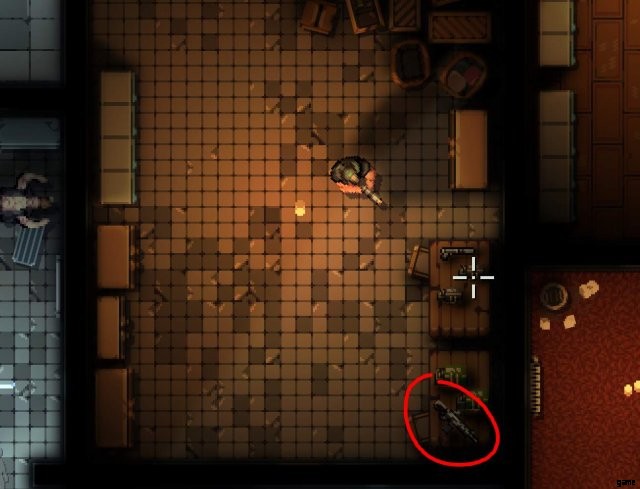 - SAIGA-12K は、東にある射撃場の建物内のテーブルの上にあります。