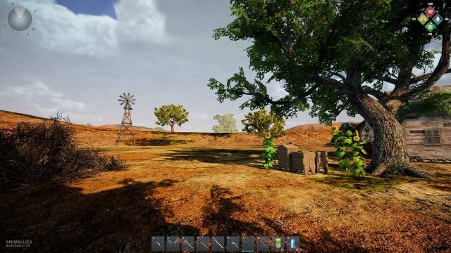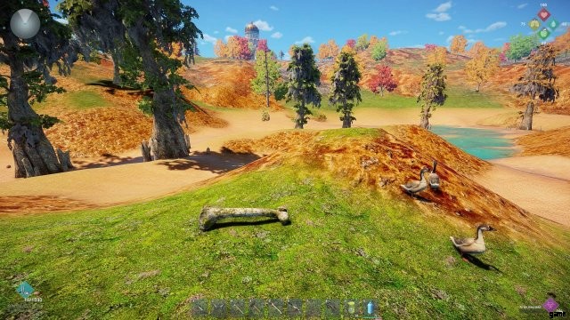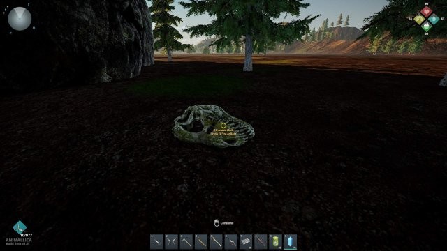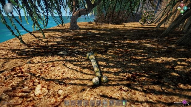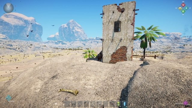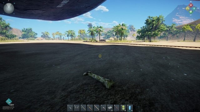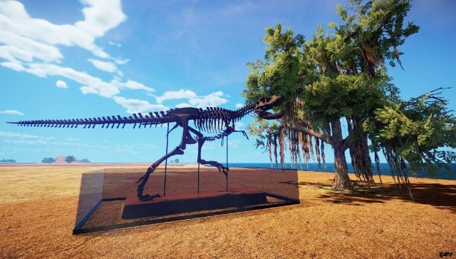 農場の右側の小道に沿って進むと、略奪可能なヤシの木があり、そのすぐ隣に恐竜の骨があります.