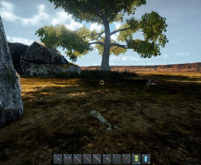 メインの町からジャイアント オークに向かいます。スクリーンショットでは、カーソルの下にある色あせた木がショットの中央にあります。