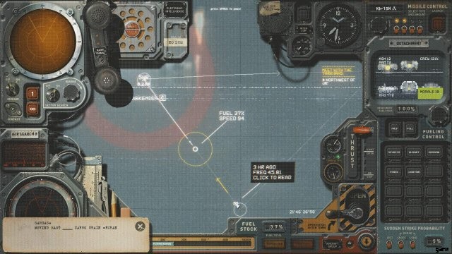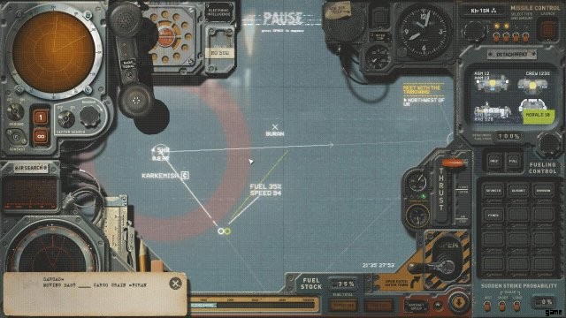 これはウルクのすぐ外にあるため、敵の ELINT のリスクはありませんが、良い習慣を身に付けるのが最善です.セクター サーチ ダイヤルを使用して、BURAN のおおよその方向にレーダー ping を数回送信し、予測された飛行経路の北、私の北北東に彼を見つけました。