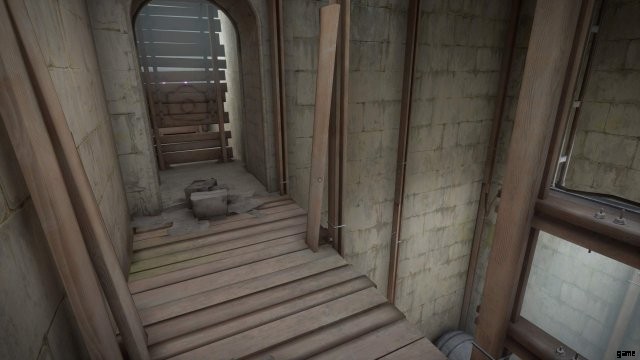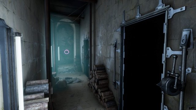 厚板のある 2 番目の泥エリアの前の廊下 (写真モードを使用して岩を破壊):