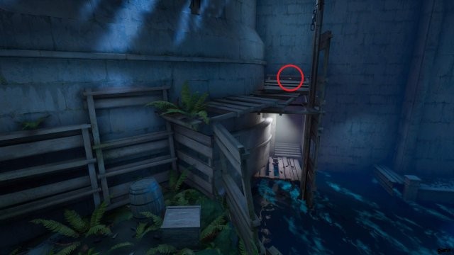 右側のバレル/クレートにジャンプして、この棚の一番上に到達します: