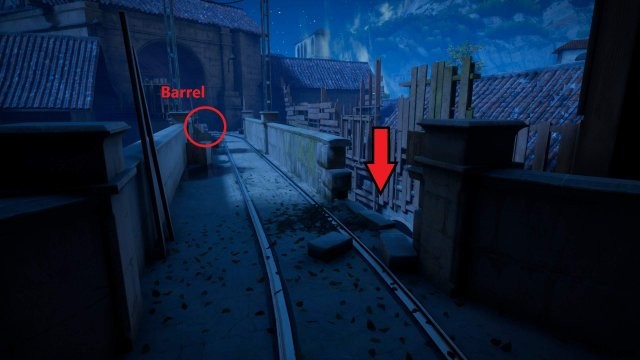 収集品は章の最初にあります。ただし、そこにある樽はすべて非常に壊れやすいものです。この橋にたどり着くまでプレイし、樽を見つけて拾い、飛び降ります: