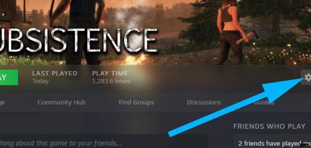 - Steam ゲーム ライブラリで Subsistence の設定アイコンをクリックします。