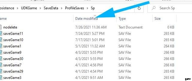 - (SaveData フォルダー内で) ProfileSaves/Sp/ フォルダーを開き、「更新日」別にファイルを一覧表示します。