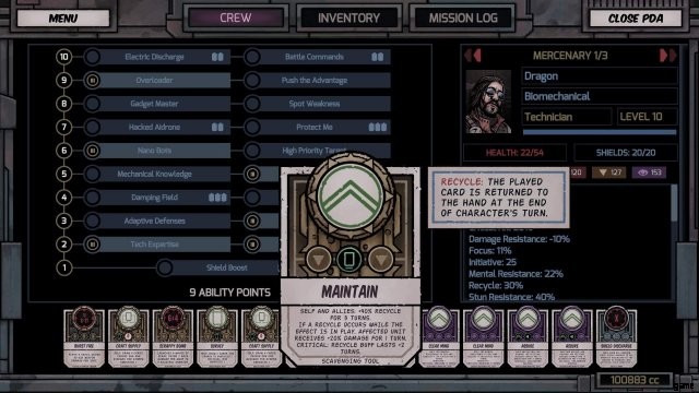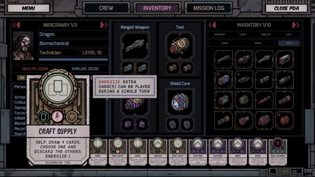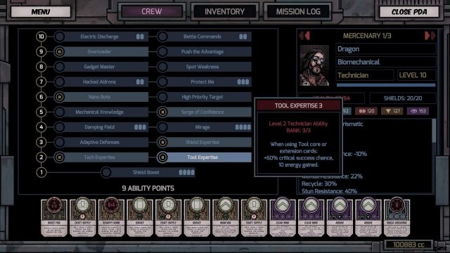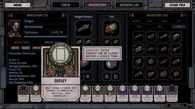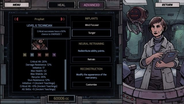 サージャー インプラント:クリティカル サクセスに 50% の確率でエネルギー 1 を与えます。つまり、クリティカル サクセスを行うたびに、50% の確率で追加のカードをプレイできるようになります。また、技術者として、ツール カードを使用して重大な成功を収める可能性が 60% あります。