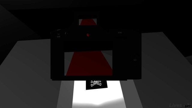 最初の部屋で、カメラを持って、入った場所の反対側の壁にある大きな通気孔を指さします。ここで重要なのは、カメラを持って、ジャンプ中に赤いオブジェクトを見ていることを確認することです。そうしないと、落ちてしまいます.