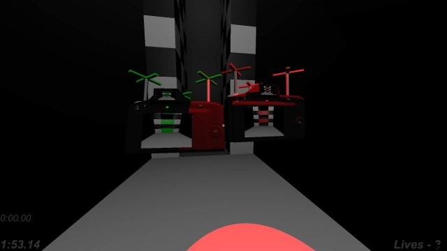 それに続いて、カメラの最後のセクションは、進むにつれて急になる階段です. 3 台すべてのカメラを配置するだけで、すべてのステップがアクティブになり、歩いたりジャンプしたりできます。ハイライト表示されたカメラ スタンドの近くで終了します。
