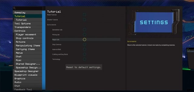 修理チュートリアルをもう一度行うことで、新しいスターター シップを簡単に入手できます。設定> チュートリアル> 修復ジョブに移動します。