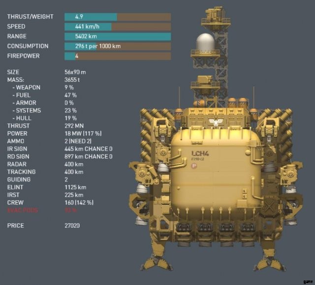 それは、艦隊を支援したり、どこかに飛んで敵を誘い込むために使用できるジャマーを備えています.実際にはこれを使用する必要はありませんでしたが、デフォルトの旗艦を使用して敵の SG をおびき寄せる必要がある場合に役立つかもしれません。