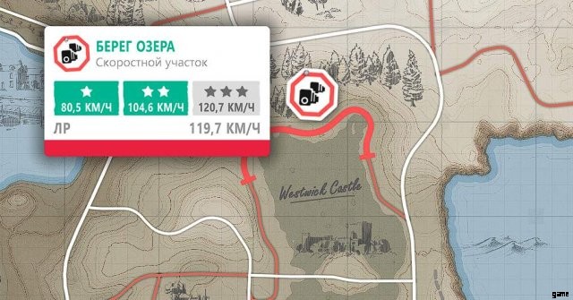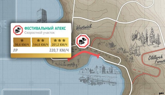 次の賞品を獲得するには、イタリアのスーパーカー Ferrari 458 Italia で「針まで」ドリフト ゾーンを完了して、少なくとも 1 つの星を獲得する必要があります。その後、すぐに胸の座標を受け取ります。