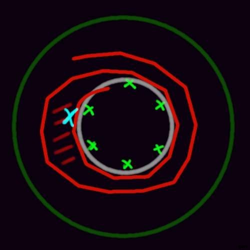 このようにして、ポジション 2 で待機するだけで敵をかわすことができ、通過しようとするすべての敵を攻撃する準備が整います。