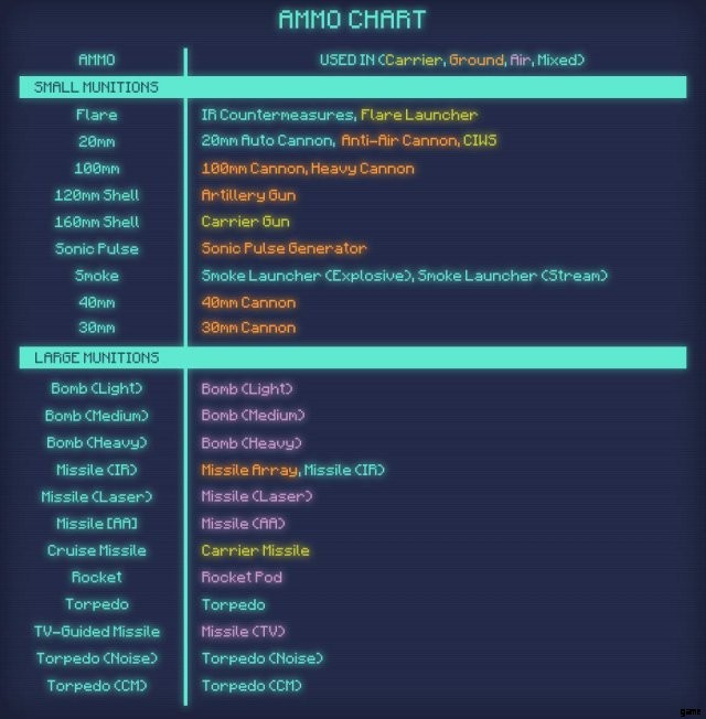 キャリア コマンド 2 – 弾薬と兵装チャート