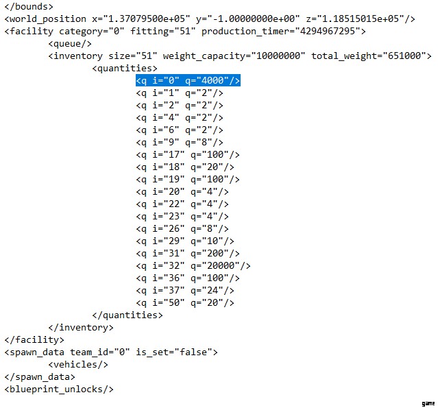 次に CTRL+F を押して検索メニューを開き、<item_quantities> と入力します。検索メニューに移動し、次に [次を検索] をクリックすると、下の画像のようなメニューが表示されます。すべて 0 のメニューが表示された場合は、間違ったものであるため、[次を検索] をもう一度クリックします。それを見つけたら、下の画像を参照して、どのアイテムがあるかを確認できます。値を変更して完了した場合は、ファイルをクリックして保存し、ゲームに移動して、値を変更したゲームをロードします。土地 1、土地 2 は参照用であり、ゲーム内でセーブすると削除されるため、記述する必要はありません。