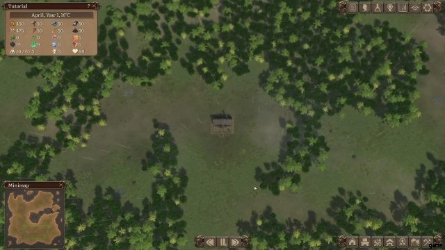 - 小屋を配置し、次に狩猟小屋、採集者の避難所、薬草師、製材所を森林地帯から少し離れた場所に配置します。