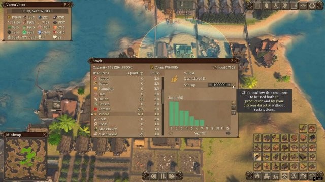 一時停止したゲームに戻って、ゲームの一時停止を解除する前に、マップ気候の選択が当面の優先事項にどのような影響を与えるかを確認しましょう.
