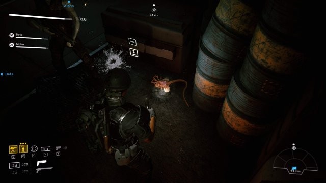 - 死んだフェイスハガーの標本: Dynamo Holdout に到達するまで前進します。 Facehugger は、私が狙っている箱の後ろにあります。