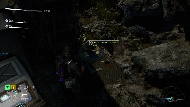 - フロンティア パイロット カウボーイ ハット: ミッションのVERY ENDで発見。 Ko がカバーしている間に橋を渡った後、放棄された Lander に向かって左折します。いくつかの箱の後ろの隅に隠れていると、帽子を置いたテーブルがあります。