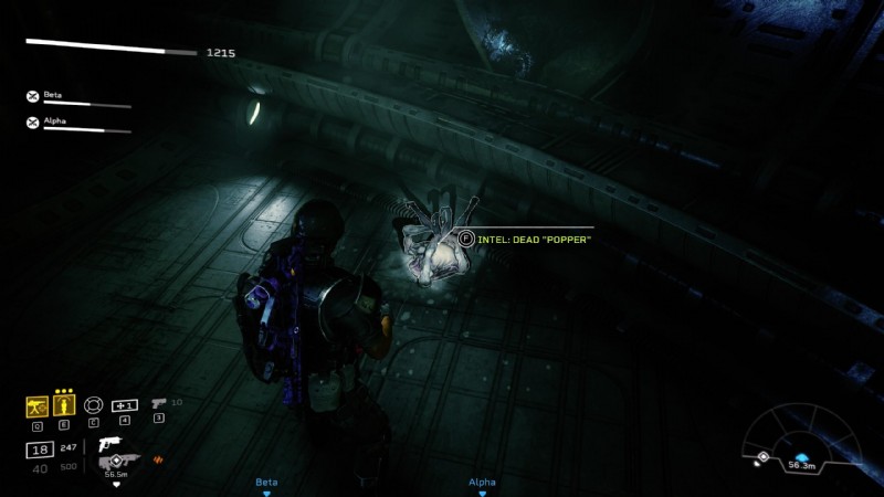 - 「ポッパー」死体: The Black Goo/Pathogen/Accelerant のこのミュータントを見つけるには、最後の Intel を取得した場所から出てください。左の通路から円形の部屋に入るには 180 度曲がると、死体がチューブの出口に横たわっているのが見えるはずです。