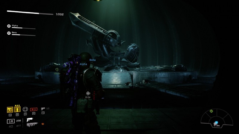 - ゼノモーフ シェッド: 「バグがコンソールの上に壁を置いた」エリアに到達します。階段を左前方に向かい、最上部に到達すると、手すりに向かって左側を見て、この小屋が床に隠れているのを見つけます。