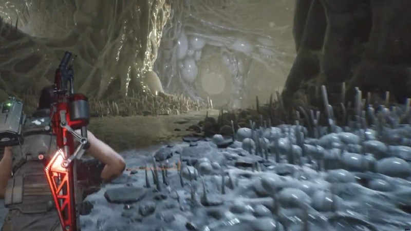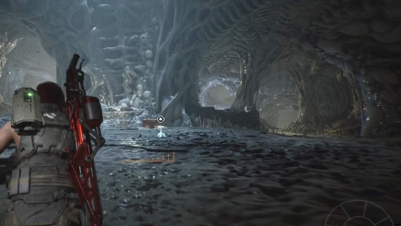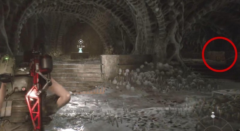 - Mutated Growth :The terrain will change from ruins to an alien colony habitat later on in the level. Once a door is opened and the task “Rally on Platform” appears, you know you are in the correct location.