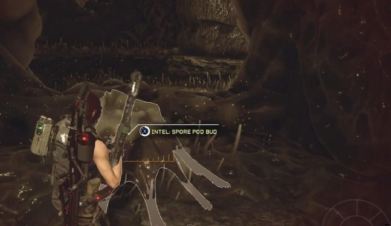 - Spore Pod Bud :Stick to the right wall after you reach that area. Keep following the wall until you reach your first piece of intelligence.