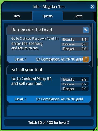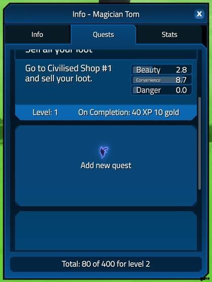 上記の値を設定すると、クエストには計算された一連の特性があります。美と便利と危険。美しさはクエスト ルートの景色の量、利便性は移動に必要な距離、危険性は殺されるか通り抜ける必要があるモンスターに基づいています。