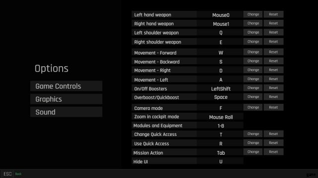 スタート メニューから [オプション] タブをクリックし、[ゲーム コントロール] をクリックします。ここから、マウスとキーボードのコントロールを再バインドできるコントロール メニューが表示されます。