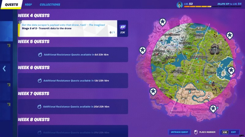 ドローンを見つけるのは非常に簡単な作業ですが、一部のプレイヤーにとっては少し難しい場合があります。ゲーム内の第 1 週、第 2 週、第 3 週のレジスタンス クエストを完了すると、このクエストのロックが解除されます。ドローンの場所と、ドローンにデータを送信する方法は次のとおりです。