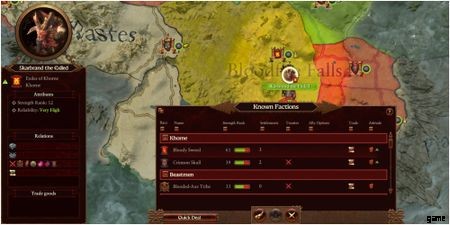However, this military might does come with a drawback. Khorne is awful at diplomacy , receiving negative relations with every other faction. Get any deals you can in the early game , because by the time you have rampaged across half the world, nobody is going to like you very much...