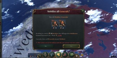 軍隊を動員する必要があります 戦争が勃発したとき。軍事メニューからこれを行い、各将軍が移動する前線を選択します。到着するまでに時間がかかることに注意してください。遅かれ早かれこれを行ってください。外交作戦中に、戦争が勃発する前に将軍を動員できます。