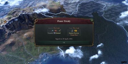 和平協定が成立すると、情報ボックスが表示され、進行中のすべての戦争目標が表示されます。 チェックマークが付いた戦争目標のみ ただし、それらの隣は解決済みです!