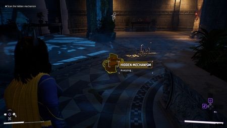 オールド パワーズ クラブに入ると、2 人の子分がパトロールしている円形の部屋にいることになります。 彼らを始末することから始めましょう - 彼らがあなたを見つけても問題ありません .それらが処理されたら、AR スキャン (D-Pad の下) を有効にします 血の跡を追う。エンドポイントまで追跡し、AR スキャンを再度アクティブにして、床下のメカニズムを明らかにします。