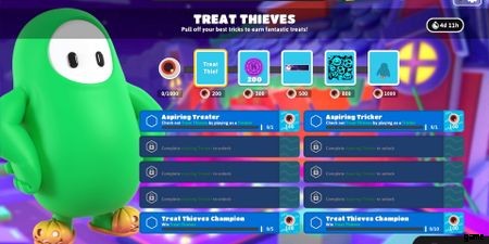 フォールガイズ は「Falloween」を祝い、ハロウィーン シーズンをテーマにしたゲーム内アイテムやイベントをいくつかもたらします。この一環として、Fall Guys はTreat Thieves の期間限定イベントを主催しています。 さまざまな不気味な報酬と引き換えに、さまざまなゲーム内チャレンジをプレイヤーに提供します。
