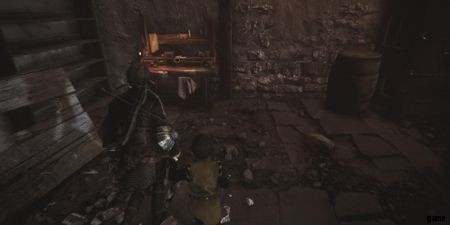 左側の戸口を通り抜けます。 右側のパスの下に別のガードが表示されます トーチの隣。たいまつを消せば、ネズミも彼を捕まえる .ネズミが最初の警備員で忙しすぎるので、階段を駆け上がり、 そしてピースがあります 左のテーブルには、より多くのピースと硫黄が入ったチェストがベッドの足元にあります。