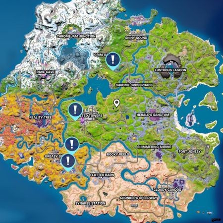 チェストを探すのは簡単な作業のように聞こえますよね? Star Wars チェストを 10 個検索する必要があり、マップ全体で Star Wars チェストは 4 つしかないため !これは、ゲーム内で最初にチェストに到達し、それを開いてから、それを 10 回繰り返さなければならないことを意味します。これは、バトルロワイヤルマップでスターウォーズの宝箱を見つけることができる場所です: