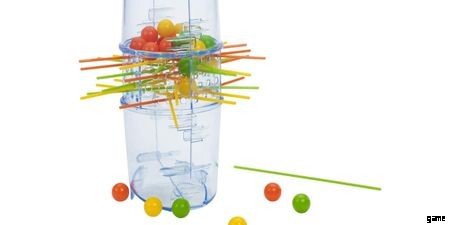 次は、プレイするよりもセットアップに時間がかかる別のゲームです。Kerplunk 支えているビー玉を落とさずに管から棒を取り除くという単純な前提に従います .落とすビー玉の数が最も少なく、棒の数が最も多い人が勝ちです。