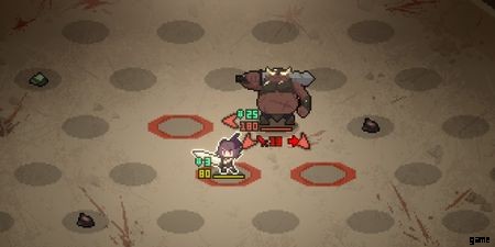 ターンごとに、ギガ ブレードはアリーナに向かって 1 マス進みます。 そして攻撃準備。弓を使用していない限り、自分で攻撃を当てるには、彼の攻撃範囲内に入る必要があります。 ギガブレードを思いっきり叩きながら、防御カードでできる限り浸しましょう 彼の鎧を身に着けるために。ギガ ブレードがアーマー ブレイクで気絶している場合にのみ、見返りをあまり受けずに安全にダメージを与えることができます。