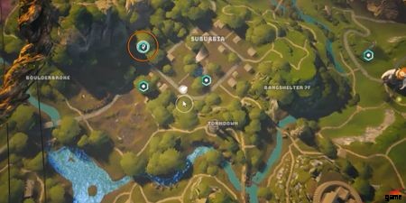 サバービアの南に向かうと、この保管庫を略奪できます 地図上の位置、具体的には北西 ウルフィダーフ前哨基地。 ガーディアン シャッキー トランクナット 2 つの家の間の草地に足を踏み入れると、スポーンします。