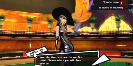 最初のスピンで何を選んでも勝てません。冴はカジノだけでなく、ボス戦でもチートをしている。モルガナは最終的にあなたが気付いたかどうかを尋ねます。戦いを続ける唯一の方法は、彼女がガラスのスクリーンを使って彼女に有利な結果をチーズで食べているのを見たと言うことです。 . それ以外の応答は、Shadow Niijima が再び車輪を回転させ、不正行為のサイクルを新たに開始することにつながります。