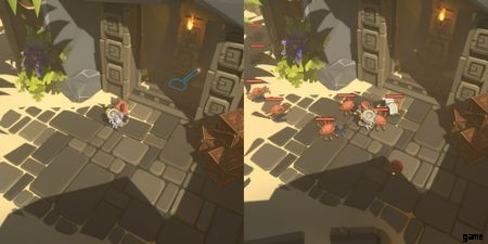 ゲームをプレイしている間、完了するためのさまざまなパズルがあります。 いくつかのパズルは、レベルの次の部分に到達するか、ドアのロックを解除するためのものです .ただし、2 つの用途があるパズルがあります。1 つは、チェストとクレートを壊して開ける別のエリアを開くことです。 、もう一方は次のレベルに到達します。そのため、パズルを行うときは、ボールを正しい表彰台に置くなど、注意を払う必要があります。次のロック解除に役立つ余分なコインを逃す可能性があるからです。