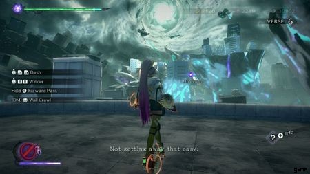 新しいカットシーンがトリガーされるまで街の廃墟を旅し、その直後にこの世界のベヨネッタを支配します. このチェイス シーケンスでは、いくつかの屋根を通り抜け、崩壊する地下鉄の通路を通り抜け、このベヨネッタの主な武器の制御を示します。消費する雲から逃げて、できるだけ速く走ってください 、次の節に安全に着陸する必要があります。