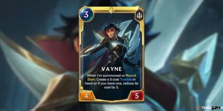 ヴェインのチャンピオン呪文はヴェインの非難です(タンブルと混同しないでください)。この 6 マナのファスト スペルは、あなたのユニットの 1 つが敵ユニットを攻撃することを可能にしますが、1 ターンにすでに 2 回攻撃している場合 (これは Tumble で完全に実現可能です)、スペルのコストは 5 マナ減少します強い> .このコスト削減は、2 回以上攻撃したターンにのみ有効です。